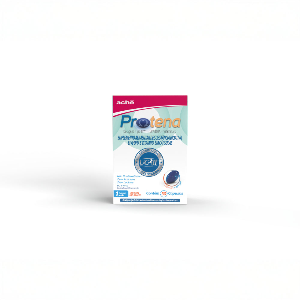 Você acaba de adquirir PROTENA, um suplemento alimentar de colágeno UC-II (substância bioativa), EPA/DHA e vitamina D em cápsula, que auxilia na manutenção da função articular.